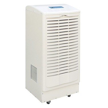 濕菱商用除濕機(jī)通過風(fēng)機(jī)將潮濕空氣抽入機(jī)器內(nèi)部,通過壓縮機(jī)制冷將蒸發(fā)器降溫至露點(diǎn)以下,潮濕空氣經(jīng)過蒸發(fā)器在表面凝結(jié)成水,匯集至接水盤后,流入水箱中,干爽空氣經(jīng)冷凝器重新加熱由出風(fēng)口排出,這樣不斷循環(huán)將室內(nèi)濕度降低。